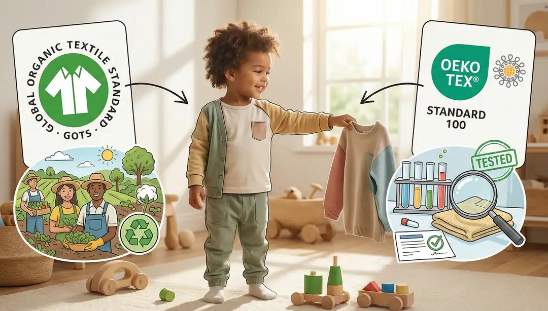 Çocuk giyim dünyasında, bir kıyafetin sadece "güzel" görünmesi artık bilinçli ebeveynler için yeterli bir kriter değil. Bebeğinizin cildine temas eden kumaşın arkasındaki hikaye, yani hangi sertifikalara sahip olduğu, aslında o ürünün güvenliğini ve kalitesini belirleyen en temel unsurdur. Ebeveynlerin karşısına en sık çıkan iki terim olan GOTS ve Oeko-Tex Standard 100, çoğu zaman birbiriyle karıştırılsa da aslında bambaşka dünyaları temsil eder. "Etiketin ötesine" bakmak, çocuğunuz için sadece bir tişört değil, aynı zamanda sağlıklı bir gelecek seçmek anlamına gelir.